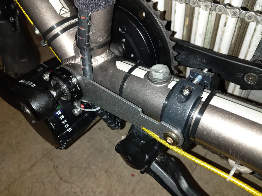 Fixing plate for stabilizing BBSHD and BBS02 mounting. The Bafang BSB-1 is an alternative fixing plate for stabilizing the mounting of the Bafang mid dive. Made of high strength 304 stainless steel, and having a mounting angle of 40 degrees, this bar will fit most non full suspension bikes and attach to the chain stay. Some bending or forming will probably be required for a rock solid installation with either a hose clamp or suitable M6 bolt. You may also flip the bar over and attach to the seat tube to get more ground clearance. May be painted or left with original stainless steel finish. Works with ALL sizes of BBSHD.